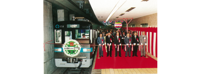 桜通線は、飽和状態にあった東山線の混雑緩和を図るとともに、市南東部の需要に応え、既に開業している路線と連絡交差をすることにより輸送の効率化を図る路線網を形成するために、計画された路線です。その第1期工事区間である中村区役所・今池間(6.3km)は、世界デザイン博覧会開催期間中の平成元年9月10日に開通しました。