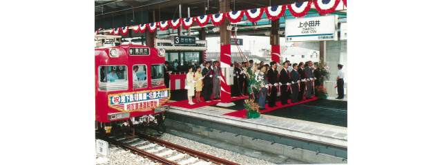 平成5年8月12日に、鶴舞線上小田井・庄内緑地公園間(1.4km)が開通し、名鉄犬山線との相互直通運転を開始しました。