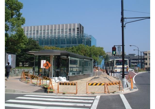 工事中の名古屋大学駅を地上から見た様子